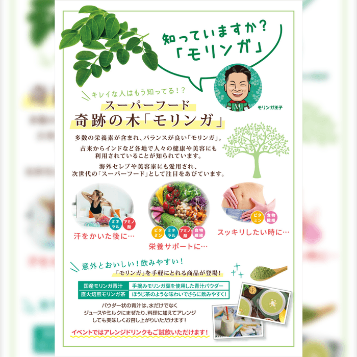 300の病を予防し、90種以上の豊富な栄養素を含むスーパーフード「モリンガ」を使用した商品が体験できる試飲&販売会を開催!