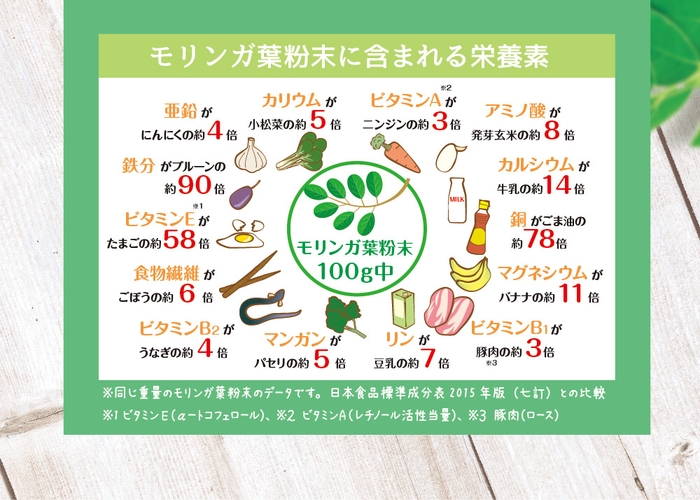 そんなモリンガの葉には、90種類以上の栄養素が含まれており、