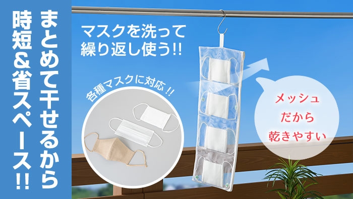 マスクは洗って再利用が新常識!自宅の洗濯機でまとめて洗ってそのまま干せる「まとめて干せるマスク用洗濯ネット」