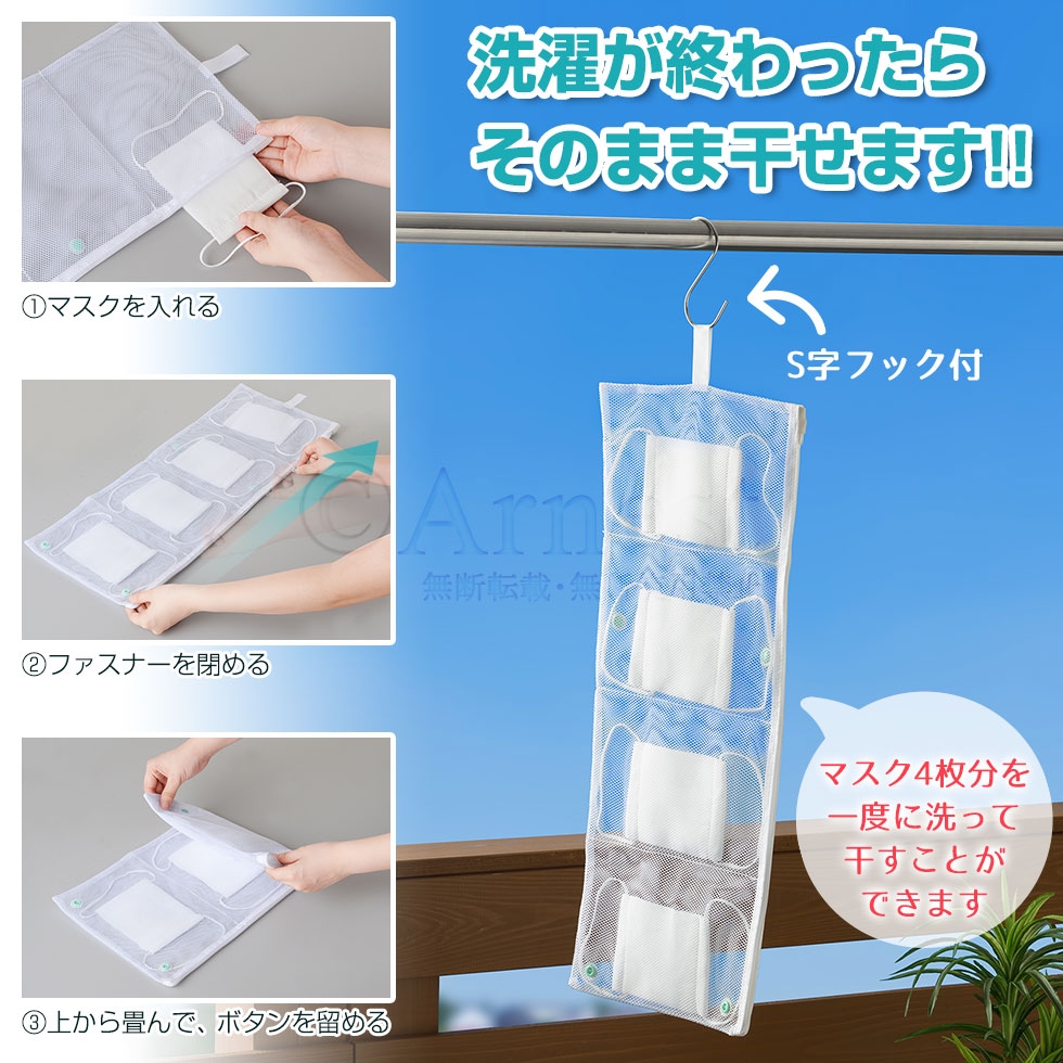 商品名 :まとめて干せるマスク用洗濯ネット S字フック付