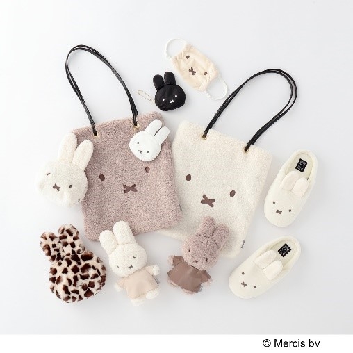 ふかふかのフェイクファートートバッグやポーチ、ふわもこルームスリッパや、まるで「ミッフィー」になったかの様に羽織れるフード付きのルームブランケットまで、アイテムは全9種類(¥990~¥3,850 税込)。オフィスで、おうち時間でと自分用にはもちろん、冬のギフトとしてもぴったり。ぜひ店頭やWEBでご覧下さい。