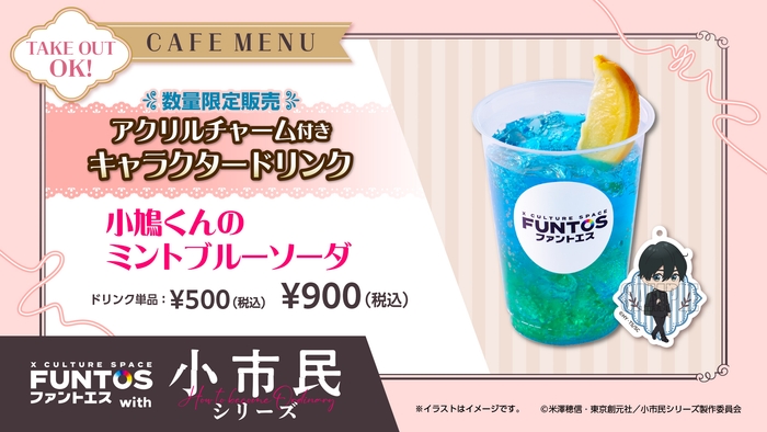 期間中(8月30日~9月24日)、アクリルチャーム付きドリンク900円(税込)、ドリンク単品500円(税込)にて提供いたします。