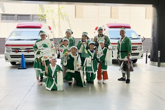 みどりのサンタがやってきた 医誠会国際総合病院へ元気な笑顔とお花のプレゼント