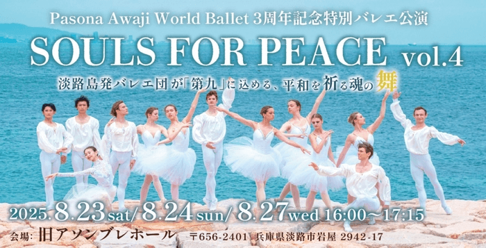 ウクライナ支援プロジェクトにより来日したバレエダンサーや指導者、国内ダンサーで構成している「Awaji World Ballet」の3周年記念特別公演『SOULS FOR PEACE vol.4』を、8月23日(土)より開催いたします。