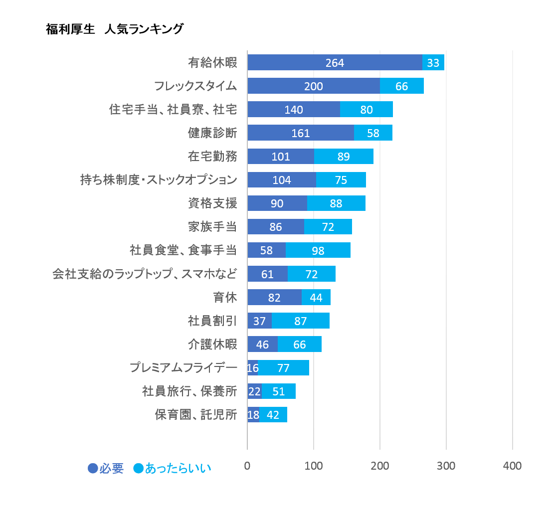 この調査の一貫したテーマとして、「休暇」「休養」「フレックスタイム」が強く求められていました。