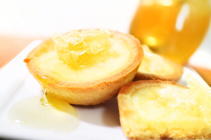 “巣蜜”をのせたはちみつ屋のタルトは、溶け出したはちみつがキラリと光る宝石のよう。