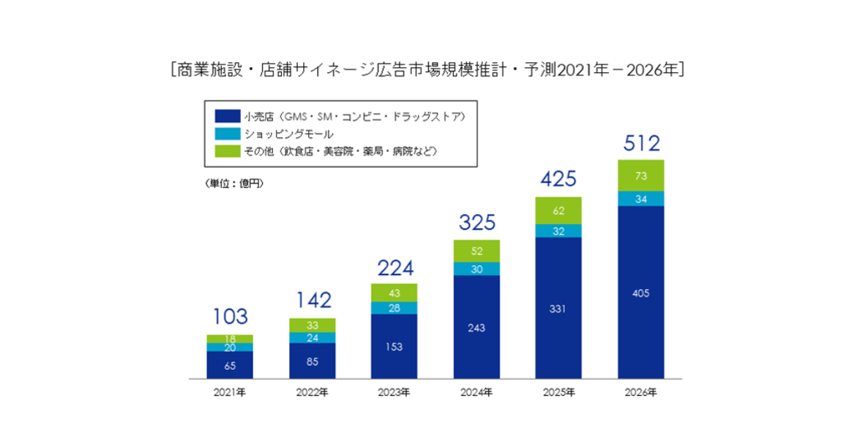 ~2022年のデジタルサイネージ広告市場規模は690億円の見通し、2026年には1,338億円と予測~