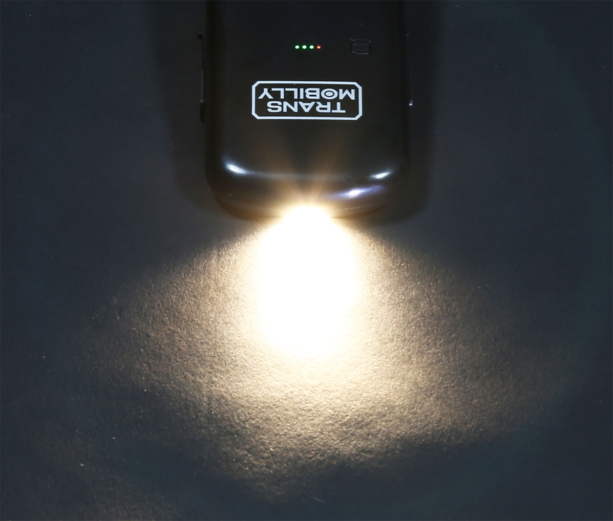 バッテリー前面のLEDは簡易ライトとしても使用できます。