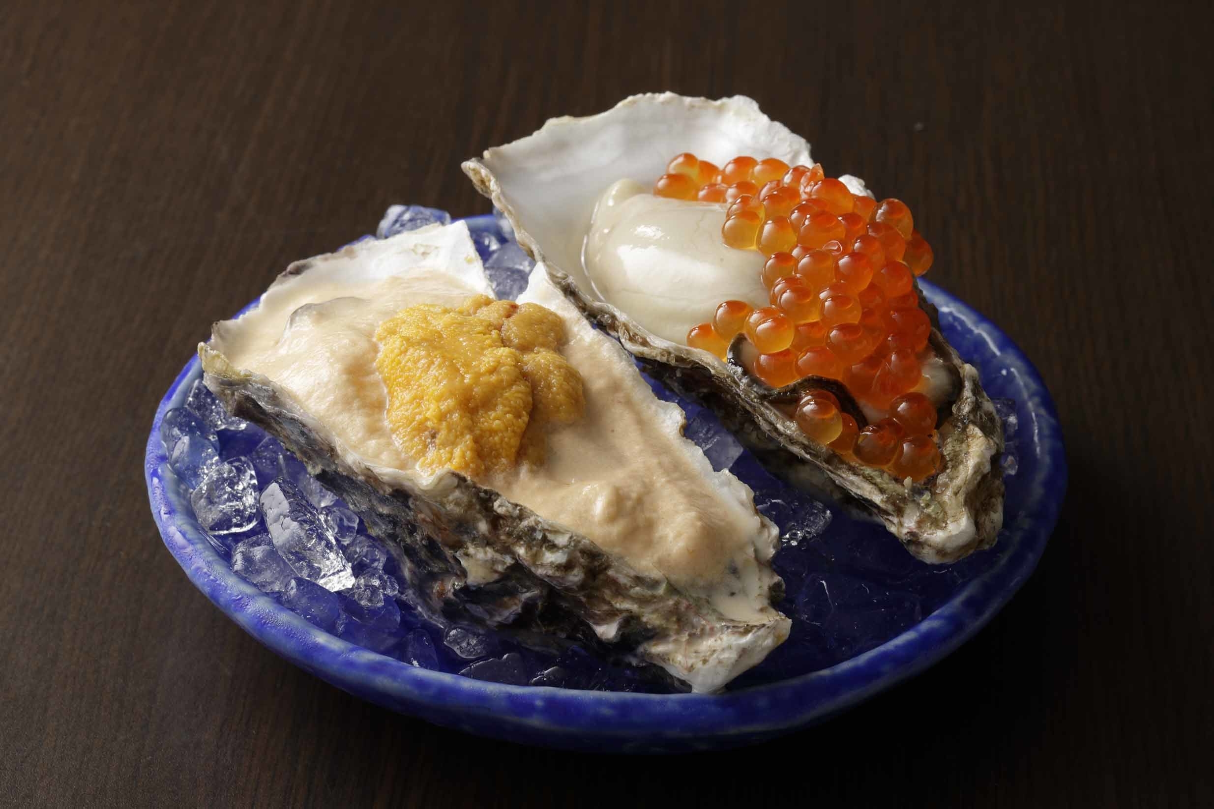 (画像右)北海道産牡蠣のイクラのせ (1個) 582円