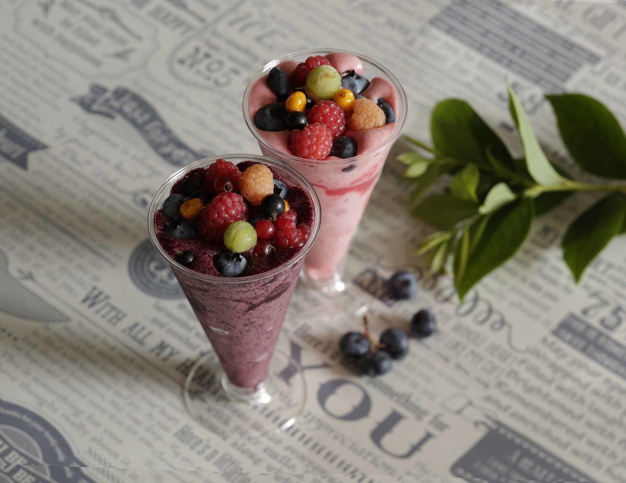 採れたての新鮮なベリーを甘酸っぱいスムージーに仕立てました。