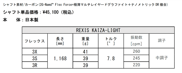 EZONE GT MAXドライバーは純正のRK-04GTシャフト(2G-Namd™ Flex Force 複合)のほか、REXIS KAIZA-LIGHTシャフト搭載モデルも同時に発売いたしますので、スウィングタイプにあったシャフトをお選びいただけます。