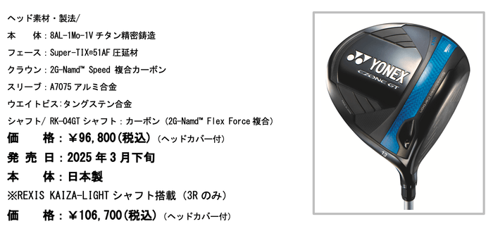 ヨネックス株式会社(代表取締役社長:アリサ ヨネヤマ)は、チームヨネックスの岩井明愛(あきえ)、岩井千怜(ちさと)選手も使用するEZONE GT(イーゾーン ジーティー)ドライバーに、安定した方向性で飛ばせる「EZONE GT MAX(マックス) ドライバー」(男性用・女性用)が新たにラインナップに加わります。また、MAXドライバーとも相性が良く、軽量ながら適度な硬さで当たり負けを気にせず、一気に振り抜ける軽量シャフト「REXIS KAIZA-LIGHT(レクシス カイザライト)」も発売いたします。ともに2025年3月下旬に発売を予定しております。