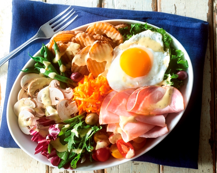 キユーピーがおすすめする外食の取り組みは、「ペイザンヌサラダ」。直訳すると「田舎風サラダ」という意味で、フランスで古くから愛されてきた定番サラダです。現地では、卵、野菜、じゃがいも、マッシュルームなどを使用したものが多く見られます。いつもの食材を使用して簡単にボリュームのある新しいサラダが提供できることを、レストラン・カフェや居酒屋などに提案して“新たな定番サラダを創出”していきます。