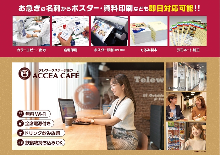 本店舗は誰でも気軽に利用できるコワーキングスペース「ACCEA CAFÉ(アクセアカフェ) 」を併設して営業いたします。