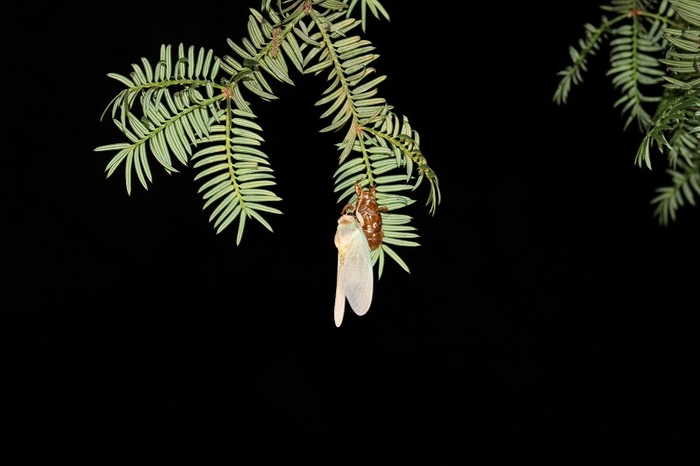 静かな夜の公園は虫たちの活動の場です。昆虫に近づきアプリを使って観察しましょう。セミの羽化の瞬間も見られるかも……。