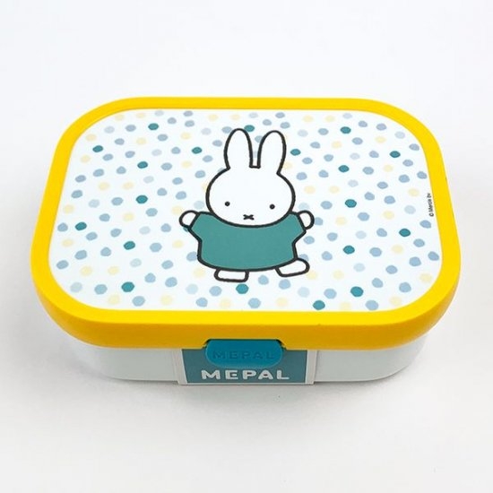 コンフェッティの吹雪の中ではしゃぐミッフィーが描かれたランチボックス。