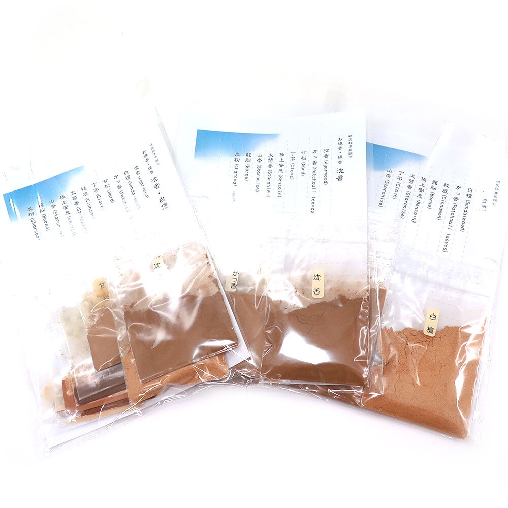 調合キット3種類(白檀調合、沈香調合、沈檀調合)、乳鉢、乳棒