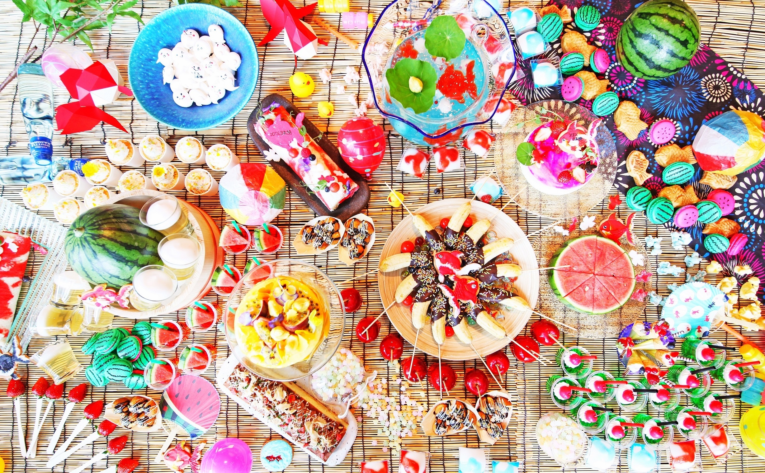 金魚をあちこちに散りばめ、屋台のような個性豊かなスイーツたち。まるで本物のように再現したそのビジュアルは、実際に見て、手に取って、食べていただきたいものばかり。