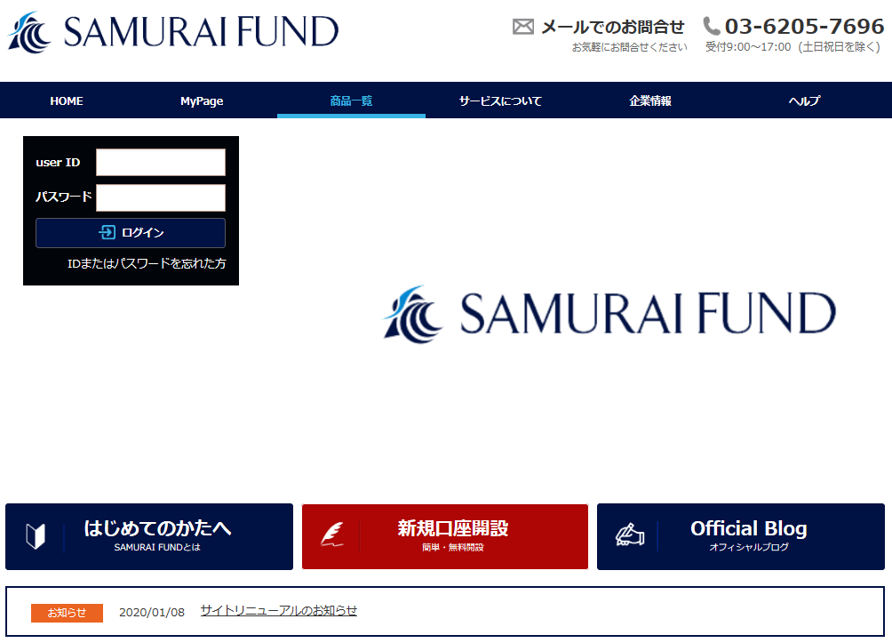 「SAMURAI FUND」サービスサイト