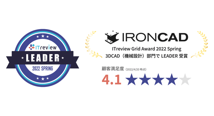 機械設計向け3D CAD「IRONCAD」が「ITreview Grid Award 2022 Spring 3D CAD(機械設計)部門」で「LEADER」を連続受賞