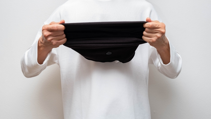 かさばらず、熱を逃さない被って着用するタイプを採用。生地には伸縮性があるため着脱がしやすいです。