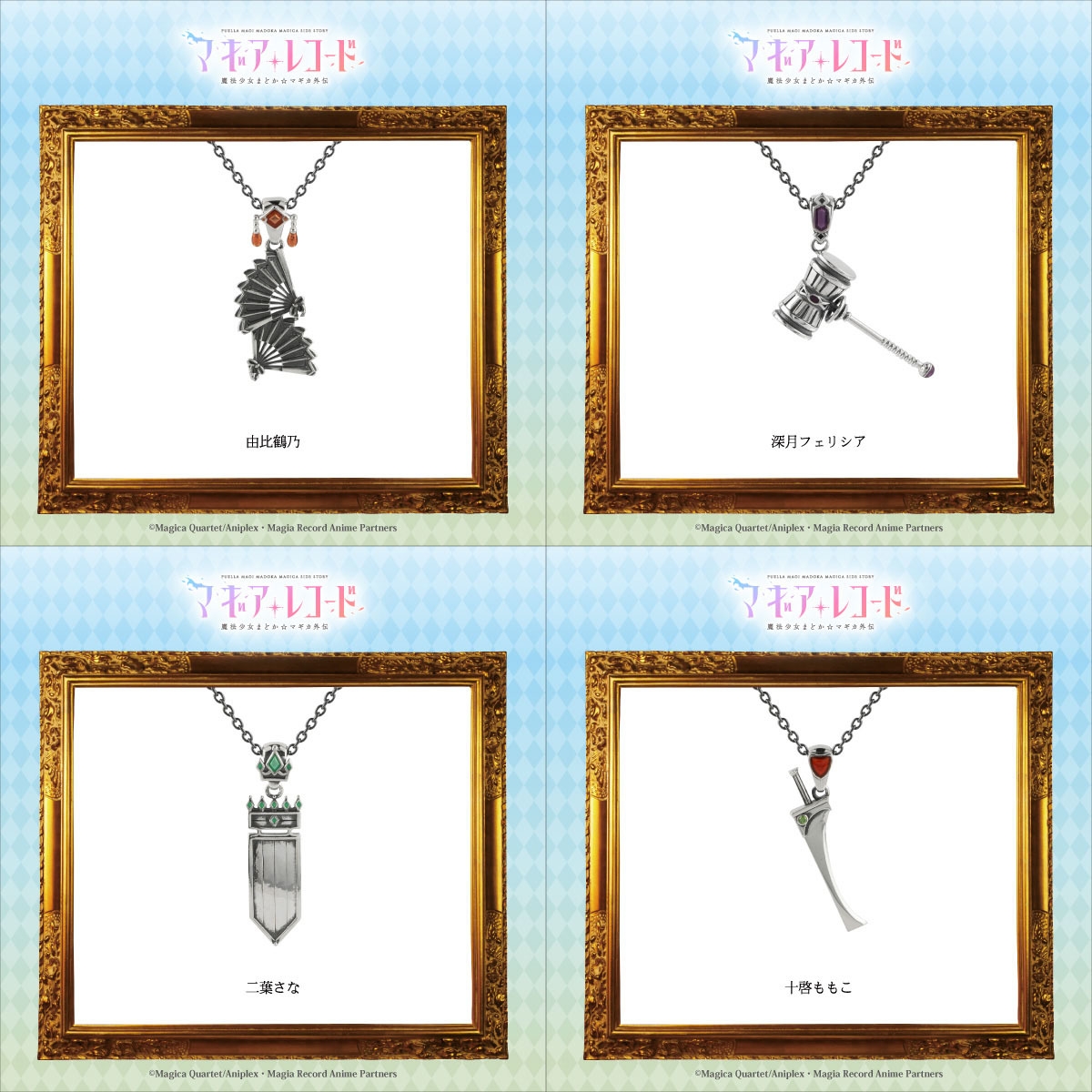 アニメのコラボイベントなどを手がける株式会社エテルノレシ(所在地:千葉県野田市、代表取締役:伊藤 学)は、TVアニメ『マギアレコード 魔法少女まどか☆マギカ外伝』より環いろは、七海やちよ、由比鶴乃、深月フェリシア、二葉さな、十咎ももこ、秋野かえで、水波レナの総勢8名の魔法少女たちのソウルジェムや武器をイメージした本格シルバーアクセサリーシリーズの発売が決定いたしました。