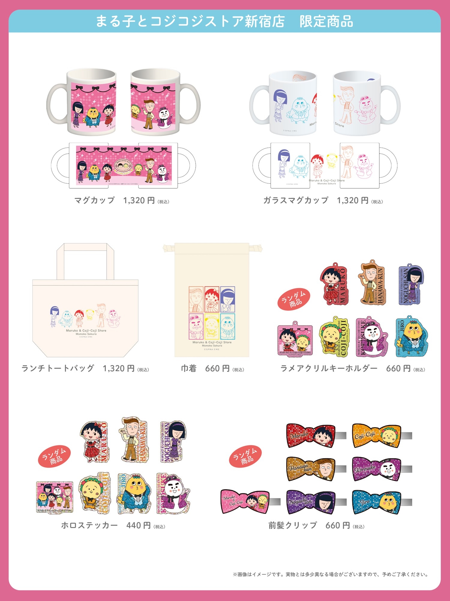 「まる子とコジコジストア」は、2021年にオープンしたキデイランド原宿店に続いて2店舗目での展開となります。オープンに合わせて、「ちびまる子ちゃん」と「コジコジ」に登場するキャラクターたちが、きらびやかな衣装に身を包んだイラストを作成しました。4月25日(金)から、同イラストを使用した「まる子とコジコジストア 新宿店」限定アイテムをはじめ、「ちびまる子ちゃん」と「コジコジ」の新商品を多数販売いたします。
