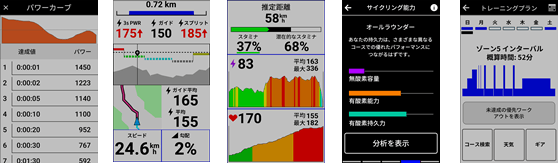 ライドコースの距離、標高、地形、位置、パワーカーブ、FTPなどの項目で分析し、パワーターゲットを割り振るガイダンスを表示します。これにより、自身の力に応じたライド計画を提示。最後まで力を発揮できるライドをサポートします。