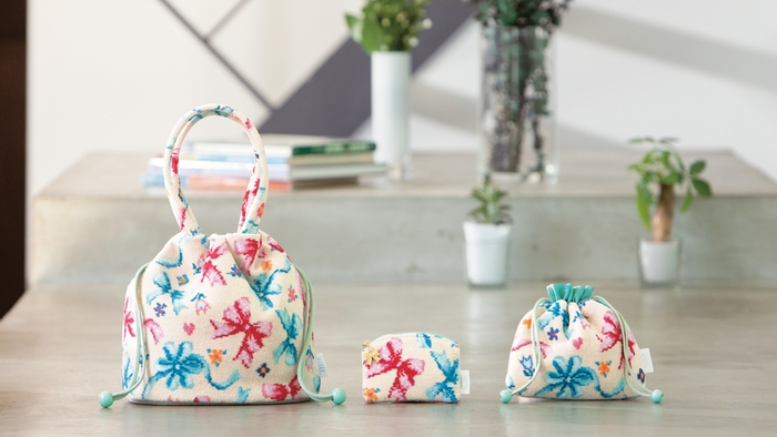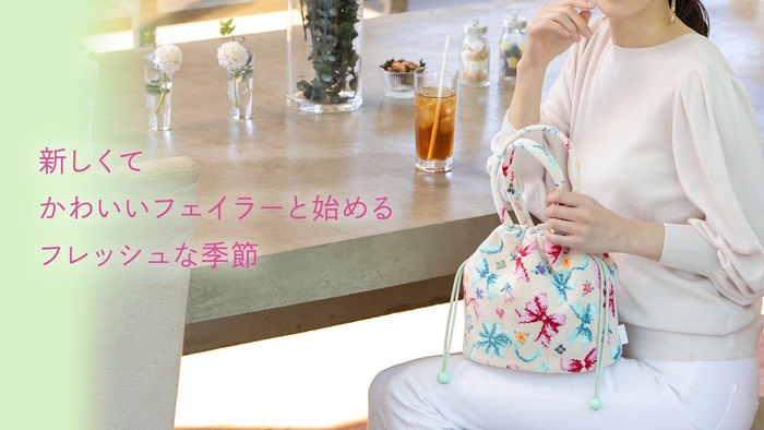 風にゆらめくリボンが女心をくすぐる『マイ スウィートリボン』。ピンクとミントグリーンのリボンが奏でるメロディに心弾む、大人スウィートな新デザインです。ラブリーなリボンのまわりには、東欧の伝統的な刺しゅうからインスピレーションを得た素朴で愛らしい表情の小花やハートを散りばめて、キュートにデザイン。バッグやポーチのほか、ティッシュケースやルームシューズ、エプロンもあり、ギフトにもおすすめのラインナップです。チョコレートを添えて、バレンタインデーに贈っても喜ばれそう。