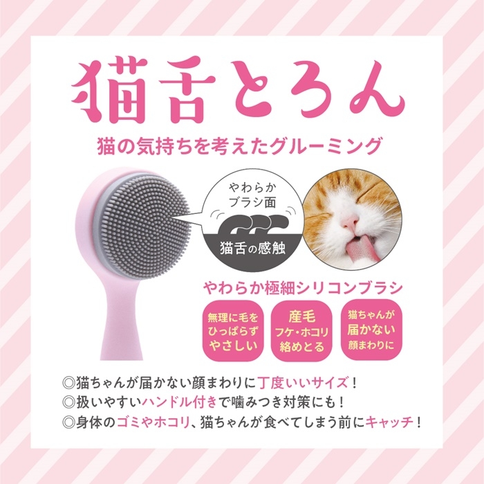猫舌の感触で、皮膚の弱い猫ちゃんにも優しくソフトタッチ。