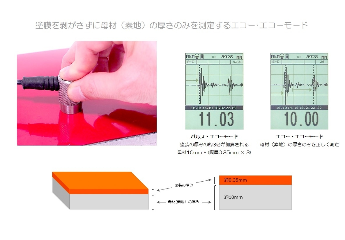 ・塗膜上からの母材(素地)の厚さ測定