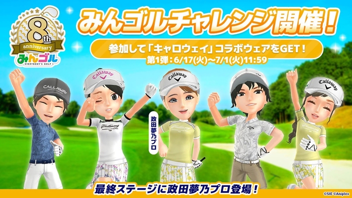 8周年の公式アンバサダーである政田夢乃プロも実際に着用している、米国発祥のゴルフブランド『キャロウェイ』とのコラボウェアが『みんゴル』に登場します。