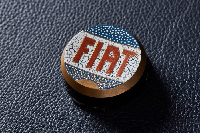 シフトノブ、スターター・ヒーターの樹脂パーツをアップグレード。 欅の木地からパーツを削り出し、木目を擦り漆により美しく磨いた後、貝を埋め込みました。 ホーンボタンは蒔絵師が旧来のフィアットのロゴタイプをオマージュし、卵殻と蒔絵技法を駆使して表現しました。 そしてコンソールボックスやシフトレバーの金属部位は、シートカラーに合わせて調色した色漆により鏡面仕上げに。 FIAT500のシンプルな内装に映えるこだわりのマテリアルです。