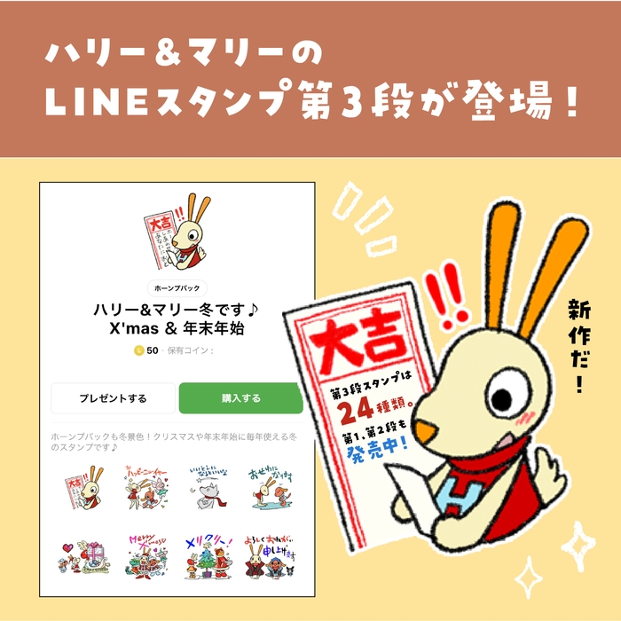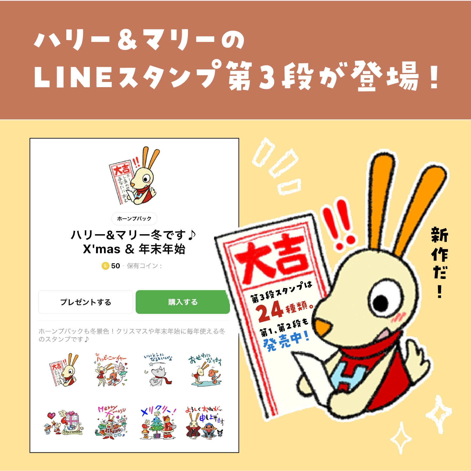 ホーンプバックから2021年のおわりに、ハリー&マリーのかわいい冬のLINEスタンプが初登場!!
