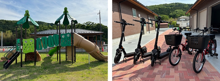 道の駅を起点に小川町の観光を楽しんでいただけるよう、隣接施設では電動の自転車やトゥクトゥク、キックボードのレンタルを実施します。ふわふわドームや複合遊具のある「ふれあい広場」、道の駅と槻川をつなぐ遊歩道も整備され、今後は槻川を活用したバーベキュー場の開設も予定しています。道の駅一帯が、観光・体験・交流を楽しめる“地域回遊拠点”としてさらに進化していきます。