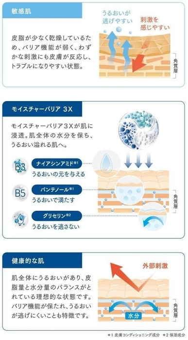 〈皮膚科学発想に基づく、製薬会社独自の処方「モイスチャーバリア3X」〉