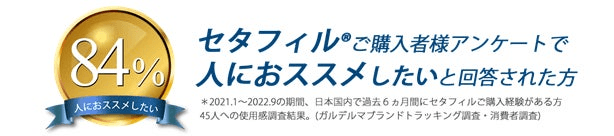 「セタフィル」とは、肌の保護成分である「セタノール」と、古代ギリシャ語で”愛”を意味する「フィル」を掛け合わせて生まれた言葉です。その名の通り、「肌を愛する」という思いが込められています。日本国内では2022年3月より本格展開を開始し、みなさまにご愛顧いただいております。セタフィルご購入者アンケートでは、人におススメしたいと回答された方が84%となり、信頼のブランドとして、より一層みなさまに愛されるよう努めてまいります。