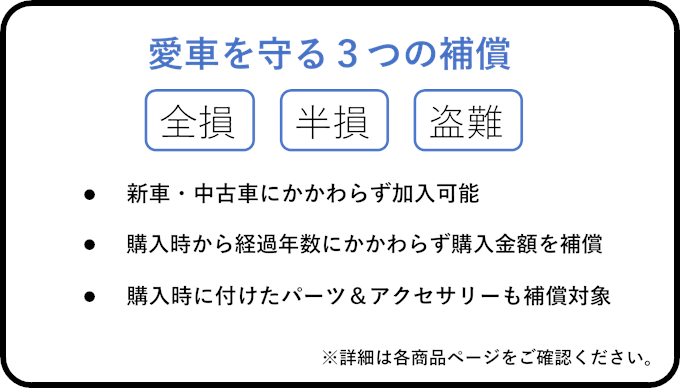 万一の被害に備えて、「保険」という形で愛車へお守りをつけるのはいかがでしょうか。