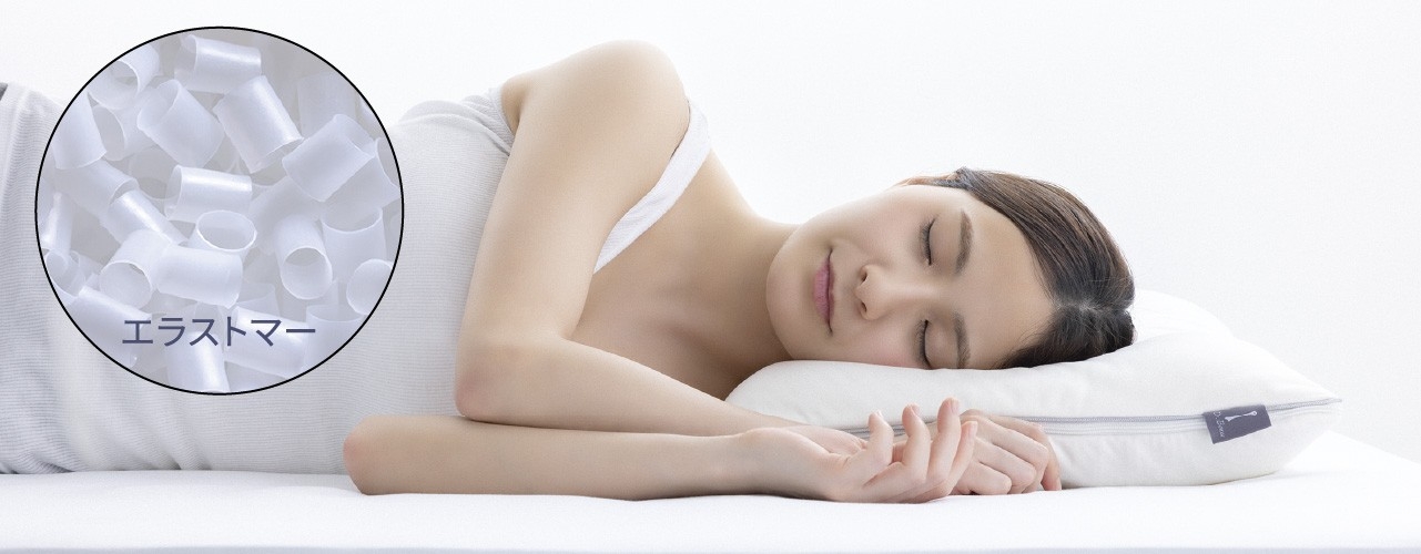 [エラストマー素材]が肌にそっとなじみ、包み込まれるような寝心地を実現します。