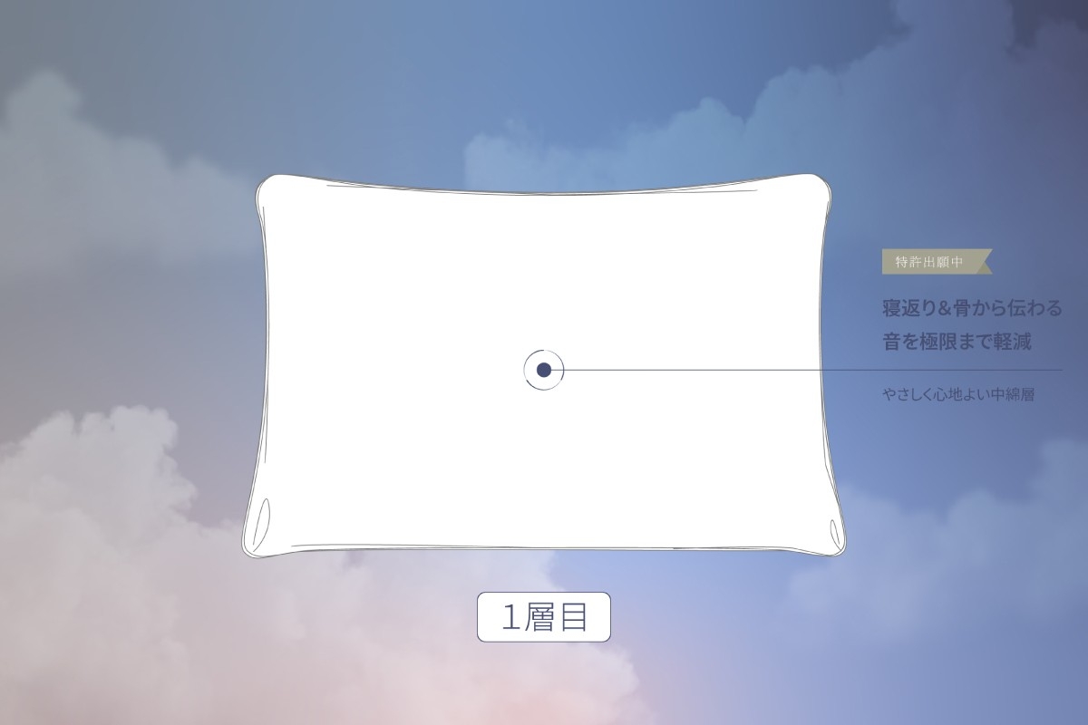 帝人フロンティア株式会社による、弱酸性の美容成分を配合した衣料品型化粧品「ラフィナン®」を枕カバーに使用。デリケートな肌や髪が触れる部分にやさしさを添え、心地よさを高めます。