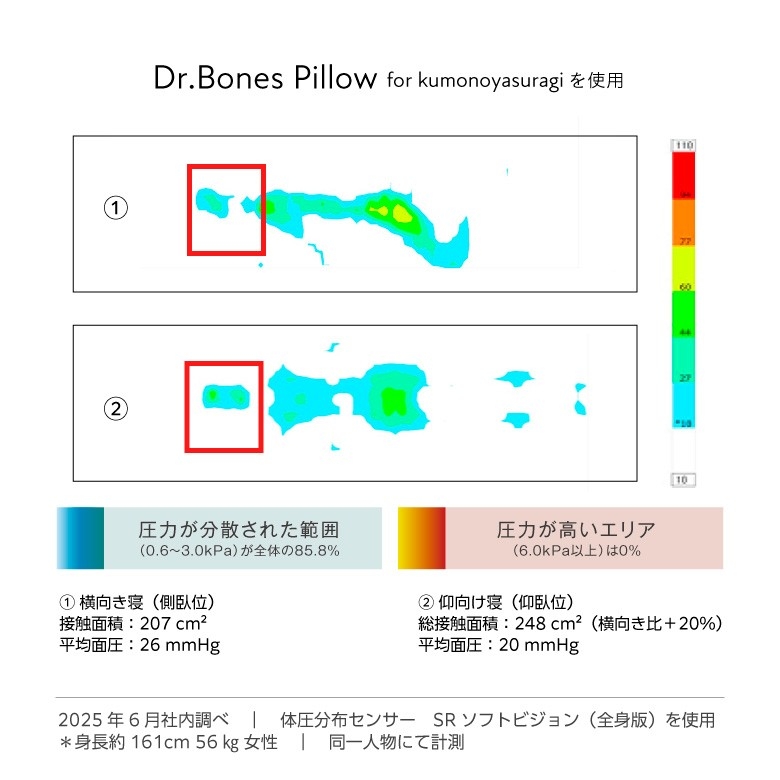 <Dr.Bones Pillow for kumonoyasuragiの体圧分散データでみる快適性>
