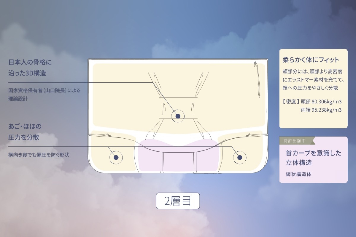 本製品は、TVや雑誌などで活躍する柔道整復師・山口良純先生の監修のもと、「心地よい寝姿勢の維持」をコンセプトに開発されました。