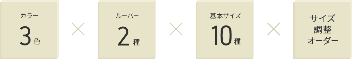 カラ-は3色、ルーバーのタイプは2種類、基本サイズが10種類あり、サイズ指定を選ぶだけの簡単オーダー!