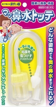 中耳炎をはじめ、喘息など、呼吸障害にもつながる鼻づまりから赤ちゃんを守ろうと、耳鼻科の先生が考案した、お口で吸うタイプの鼻すい器です。ママの口元で吸引力の調節ができるので、とりにくい奥の鼻水まで残らず、やさしく、しかも簡単にとることができます。