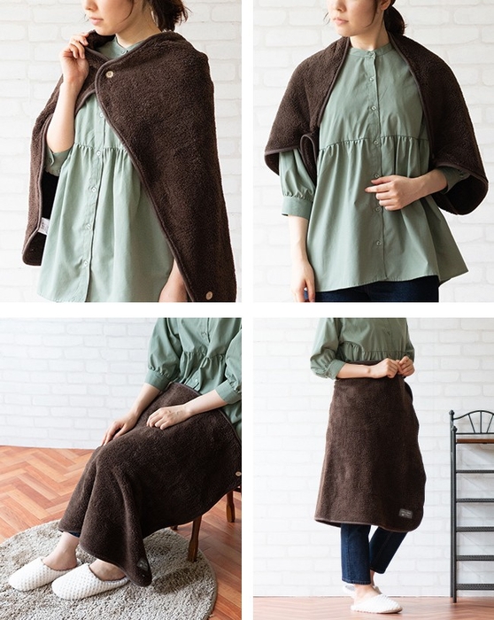 ひざ掛け、肩掛けに使える他、ぐるりと腰に巻けば家事中もあったか。