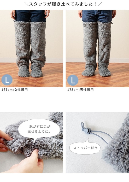 ふわふわの生地が足元から温めるロングカバーソックス。毛足の長い素材が、空気層を作り、閉じ込めるため履いてすぐ暖かさを実感。