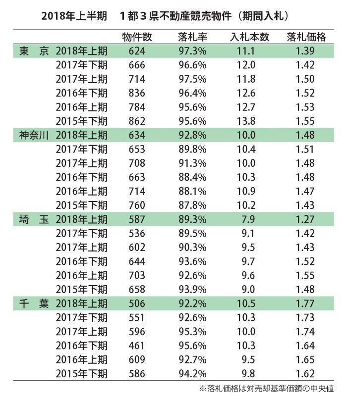 不動産競売物件、入札数増と価格上昇が止まる ~エステートタイムズが2018年上期の 1都3県不動産競売統計を発表~