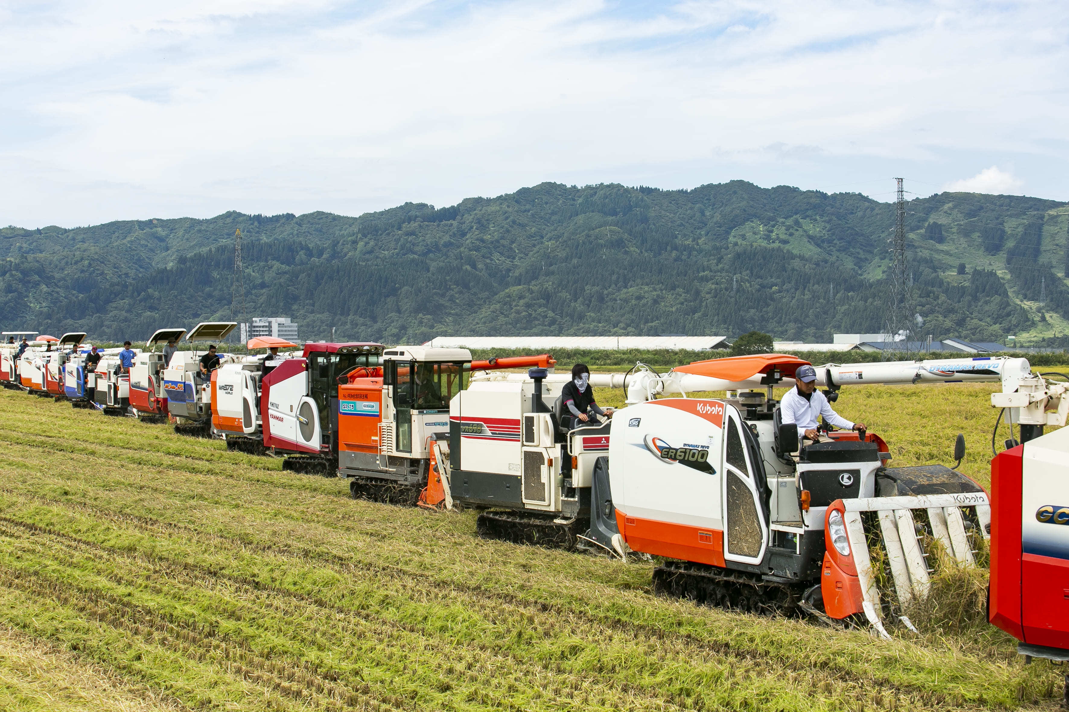 南魚沼産コシヒカリのプロモーション・ビデオが完成 南魚沼の次世代を担う若手農業者が20台のコンバインと共に集結!