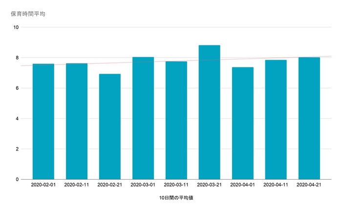 一方、必要な家庭への保育は各園において継続して行っているため、一日の保育時間の平均はほとんど変化がありません。