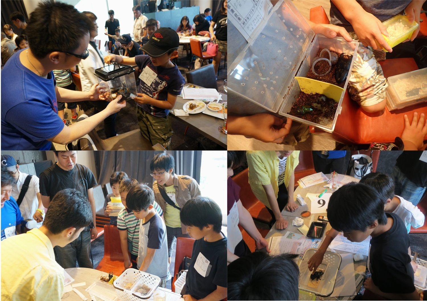 イベント参加者が自分の虫を持ち合って、名刺代わりに交流します。(交換はしません)
